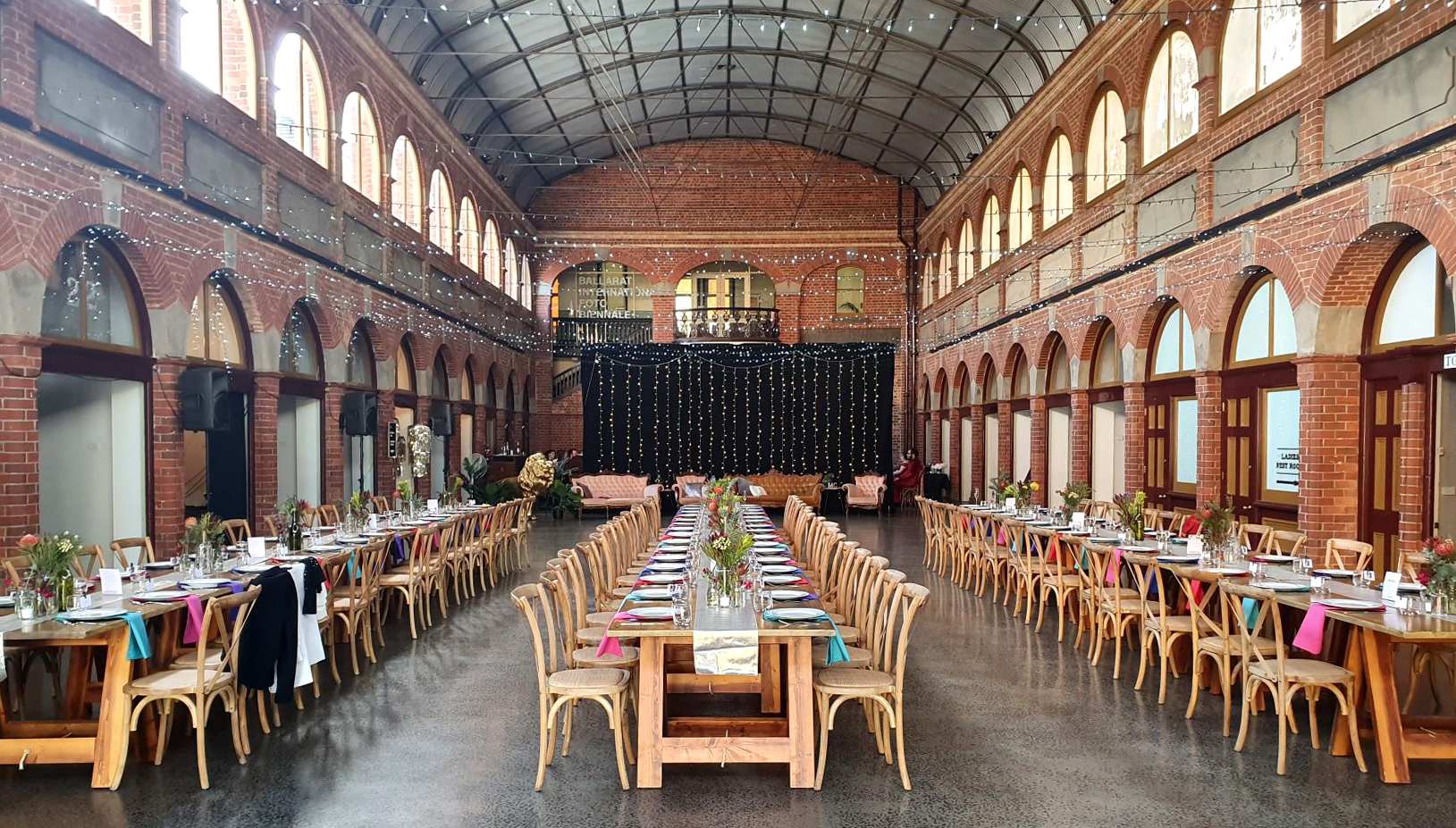 The popularity of the Ballarat Mining Exchange and a wide range of hosted events is a testament to its flexibility. Measuring 39 X 8.5 meters, the main hall has a capacity of 250 seated and 500 standing. The venue also features a breakout space for more intimate functions, celebrations and corporate meetings. This space is 10 x 15 metres and has a capacity of 100 seated, 250 standing.